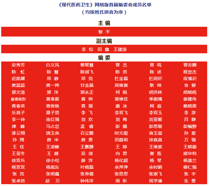 再次祝贺本刊网络版首届编委会全体成员!